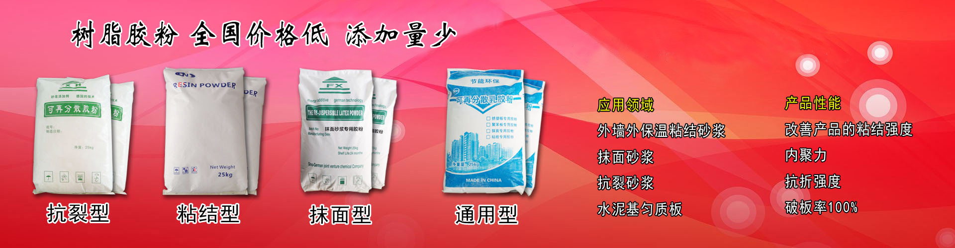 兴华树脂胶粉具有:添加量最少,降低成本,粘结力强,破板率99%以上,施工性能好。